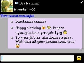Terimakasih kamu yang dengan penuh kesabaran , slalu ingin mendampingiku setiap saat :) > Sampai tadi kita mindahin barang dari kost ke rumah Godean . Sebenarnya aku deg degan apa reaksi keluarga Godean saat aku membawamu nanti , apakah ini seperti usahaku untuk mengenalkanmu ke keluargaku ? bahwa ini llah pria yang akan menjagaku .